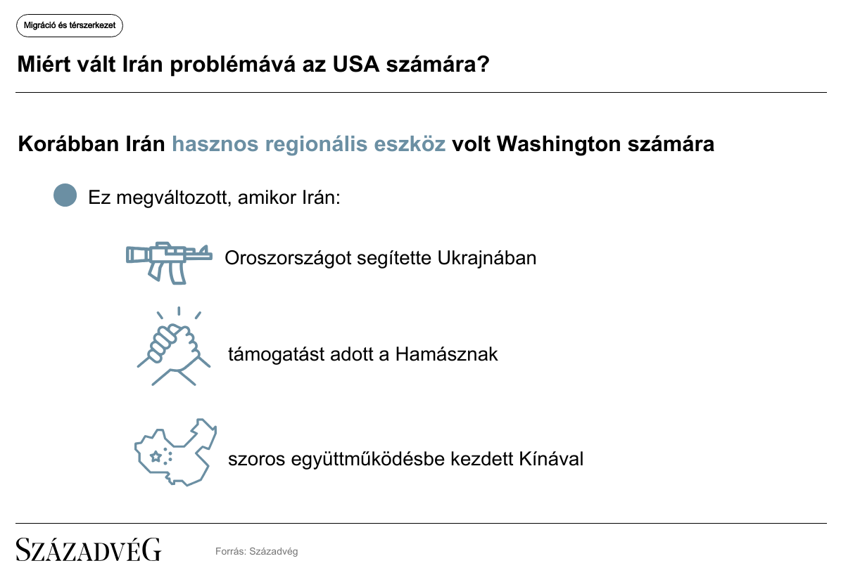 Az Egyesült Államok évek óta remélte, hogy Irán elszakad Oroszországtól és Kínától, és az USA vazallusa lesz, de mivel az iráni vezetés a saját céljait követte, ez nem történt meg. A közel-keleti síita milíciákat koordináló iráni parancsnok, Kászem Szolejmáni 2020-as meggyilkolása jól mutatja az Egyesült Államok növekvő aggodalmát az iráni terjeszkedéssel kapcsolatban. Hat hónappal azután, hogy Trump megkezdte második kormányzati ciklusát, az Egyesült Államok bombázta Iránt a 12 napos háború során, jelezve, hogy az amerikaiak megváltoztatták Iránnal szembeni stratégiájukat: a tárgyalások helyett a konfrontációt választják.[10]