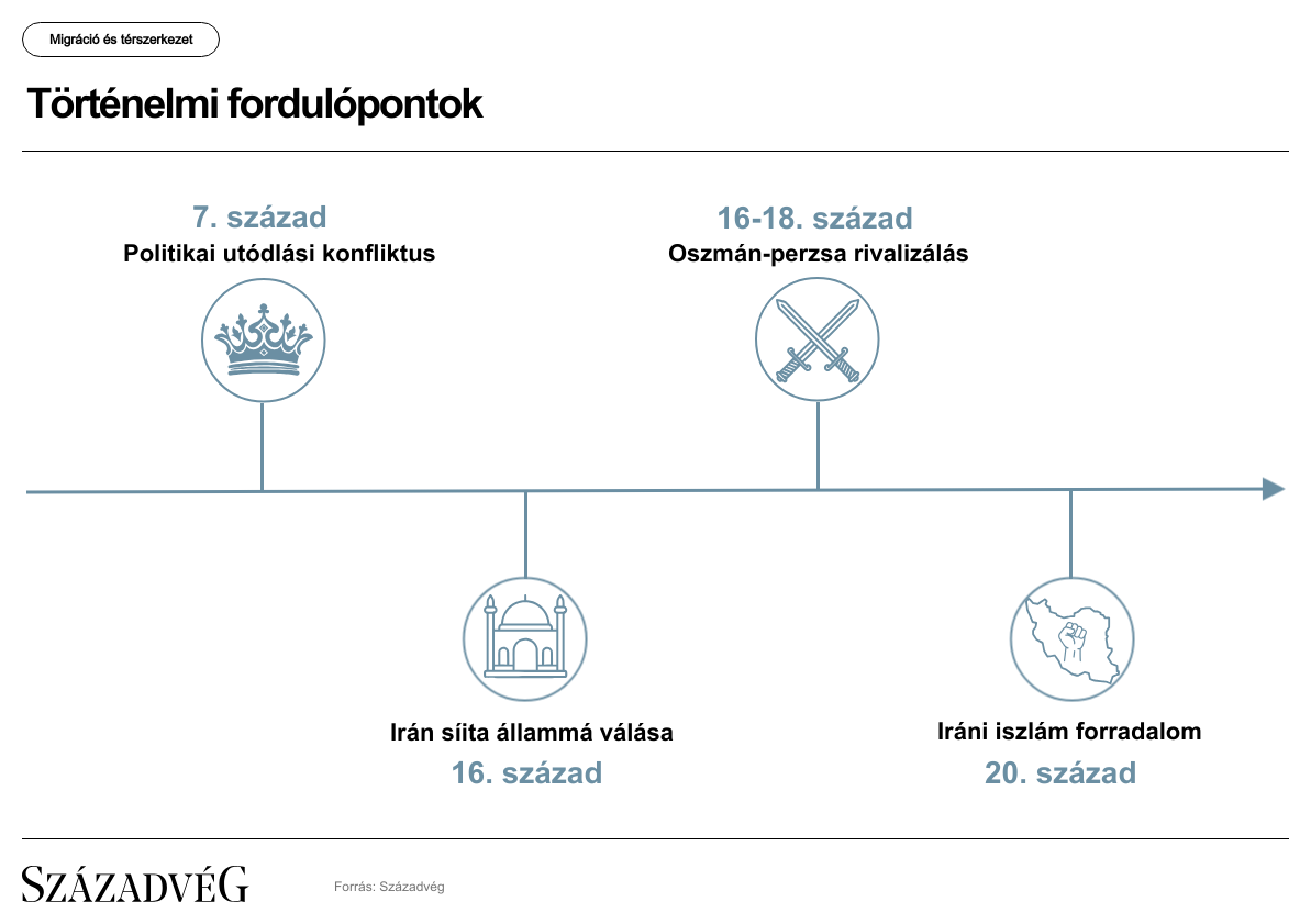A síita-szunnita megosztottság a 7. századra nyúlik vissza, amikor a muszlimok polgárháborúkba keveredtek a helyes kormányzás és legitimitás kérdésében. Ez tehát egy politikai konfliktus, amelyet később vallási-szektariánus formába öltöztettek. A szunniták és a síiták egyes történelmi korszakokban békésen éltek egymás mellett, míg más időszakokban erőszakos harcok folytak közöttük. A közel-keleti iszlám birodalmakat aláásó másik konfliktus az arabok és a perzsák között zajlott. A Szafavida-dinasztia (1501–1736) a 16. században Irán szunnita többségű országát síita állammá alakította, és így Irán geopolitikájához, az etnikai (perzsa-arab) dimenzióhoz hozzáadta a szektariánus dimenziót is. Ezt az új geopolitikai identitást először az Oszmán Birodalom elleni versengésben használták ki. Irán síita-perzsa identitása az egymást követő dinasztiák ellenére is megmaradt, és 1979-től, az iszlám forradalom óta ez az identitás még nagyobb jelentőséget kapott.[1]