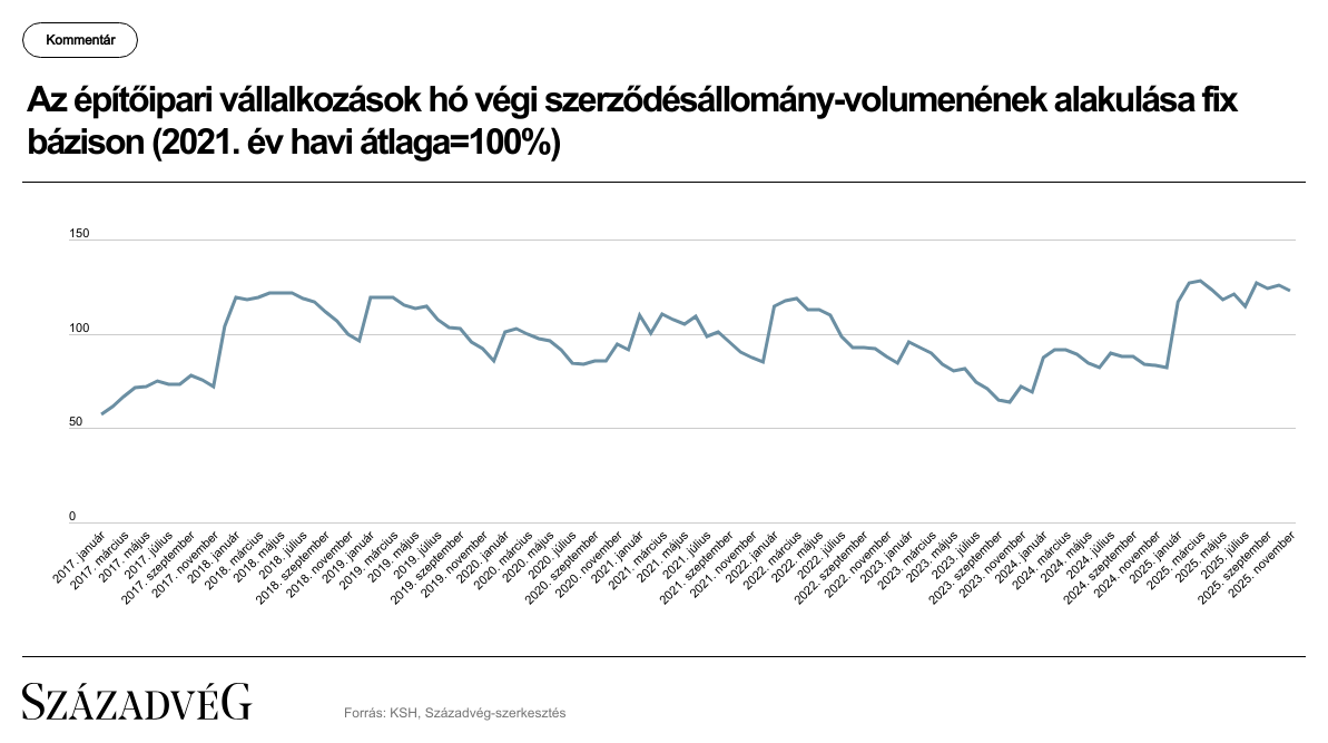 Tehát a következő időszaki teljesítmény javulását, illetve szinten tartását vetíti előre a 2025. november hónap végi szerződésállomány szintje, amely későbbiekben az építőipari teljesítményben jelenik majd meg. Ugyanakkor az építőipar teljesítményének további javulásához a hatékonyságnövelésre is szükség lehet, mivel az építőipar erősödésének korlátját a megfelelő szakemberek hiánya okozhatja.